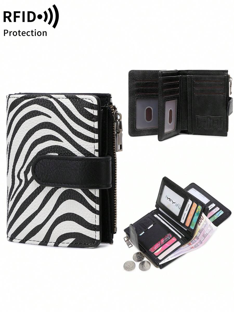 MIYIN 时尚复古女士短款钱包,多功能大容量三折信用卡夹,RFID 防盗刷钱包,适合日常使用,可装信用卡/身份证/硬币/现金/收据/照片,女士双拉链手拿包,适合日常购物,小巧便携,可作为礼物、生日礼物、周年纪念礼物。