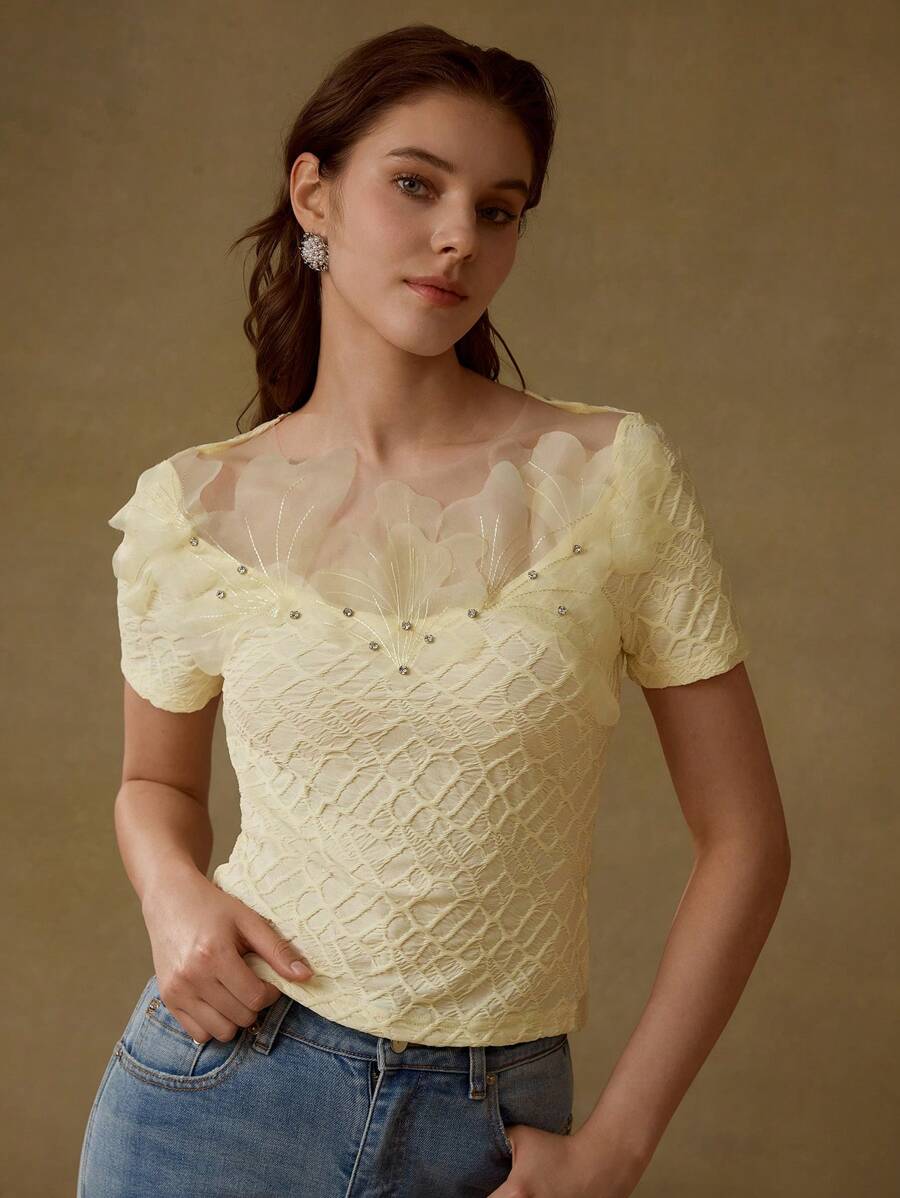 MOTF PREMIUM 女士优雅修身花卉贴花T恤