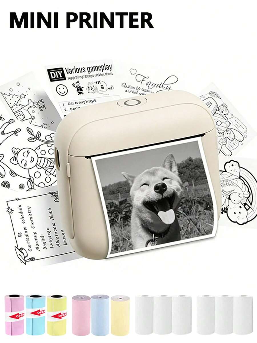 Marklife 58mm迷你便携式热敏打印机,无线口袋照片打印机,支持彩色贴纸和白纸打印,兼容iOS和安卓系统,配备USB数据线,可用于照片、贴纸、标签打印。