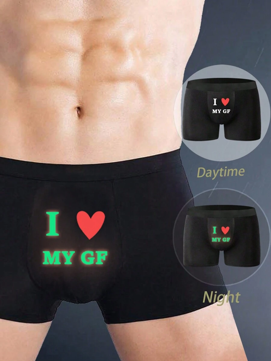 男士黑色夜光字母印花三角裤,时尚弹力休闲内裤
