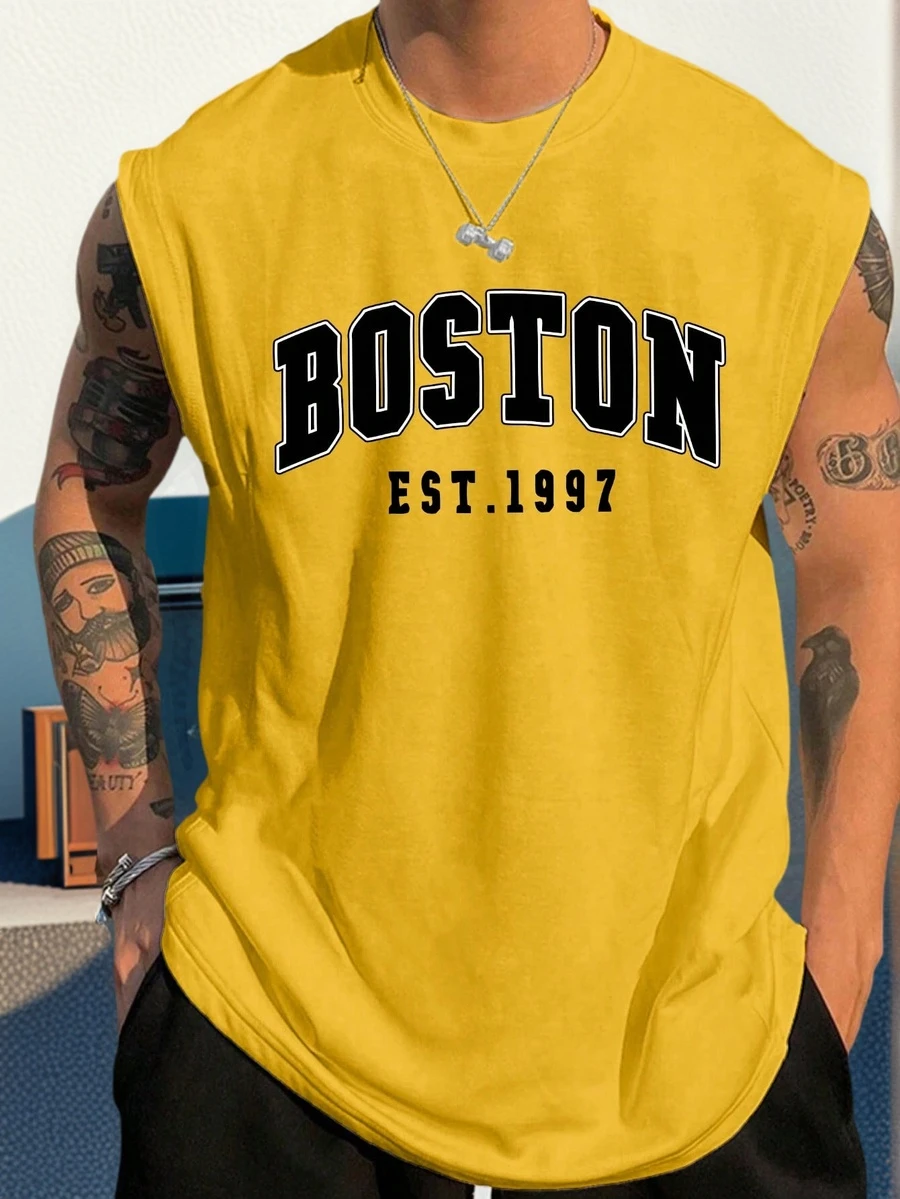 男士休闲图案印花背心,时尚简约,适合日常穿着