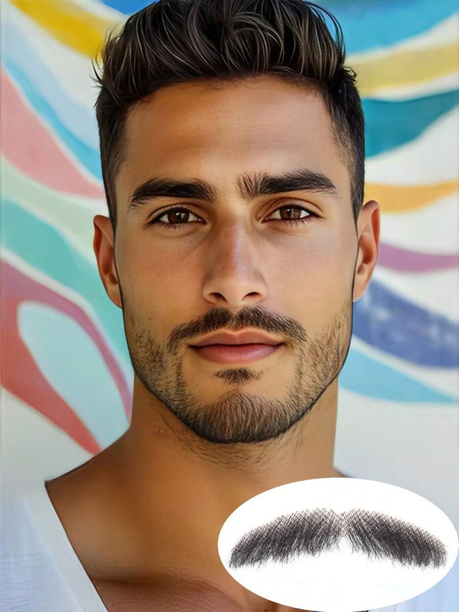 男士假手织胡须(上胡须)面部毛发自然隐形蕾丝小胡子适用于万圣节圣诞派对影视化妆装扮胡须道具假胡须