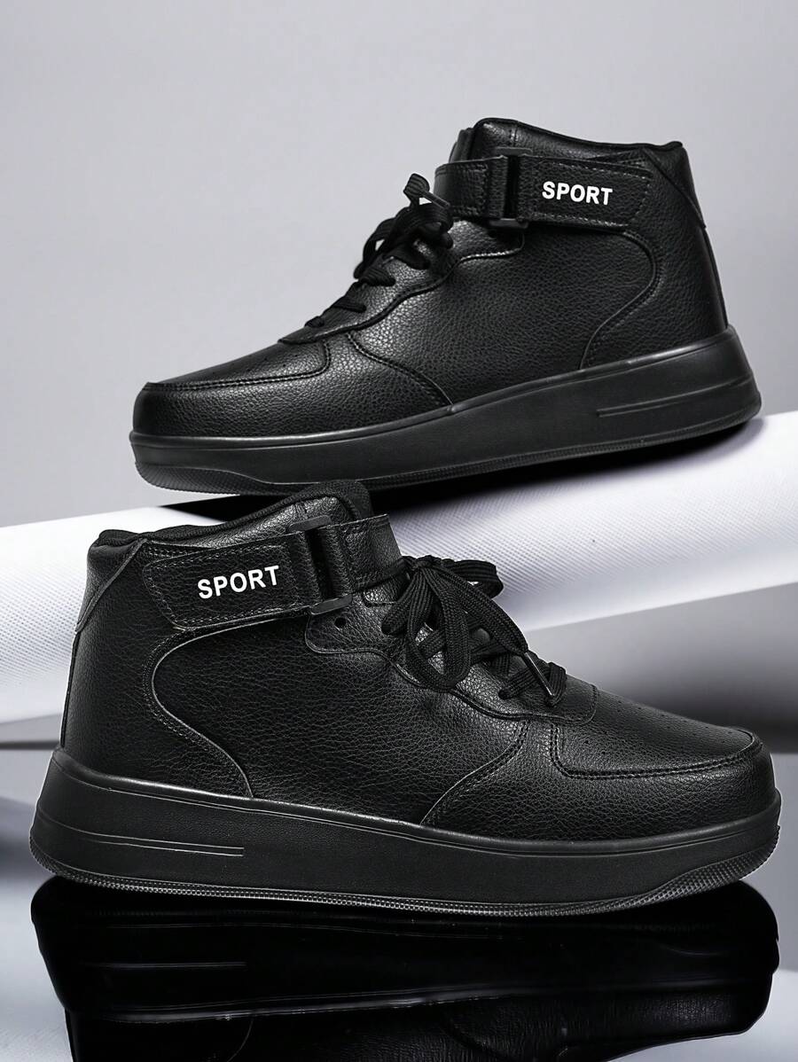 男士时尚黑色字母钩环拼接高帮休闲运动鞋,青少年百搭户外街头时尚情侣运动鞋