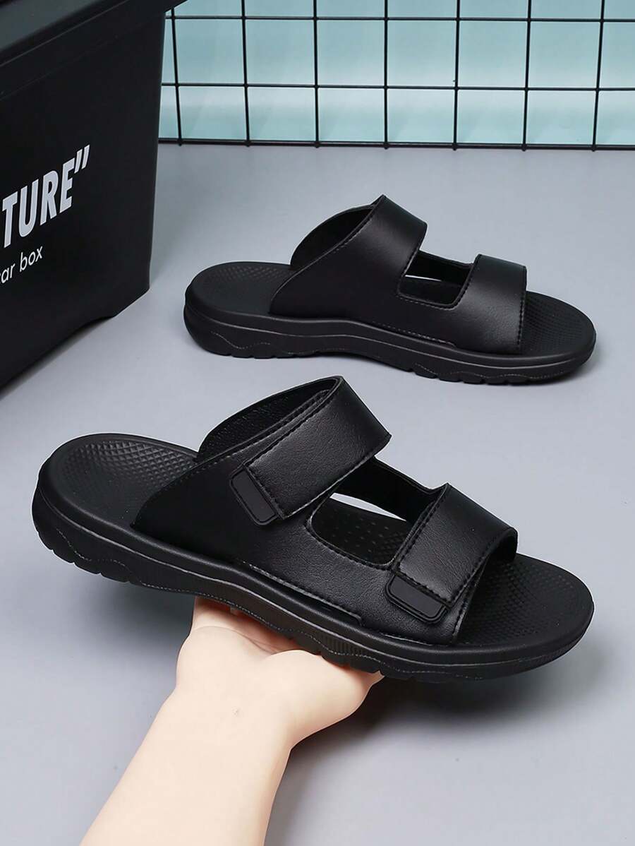 男士春夏款PU皮革休闲百搭黑色拖鞋
