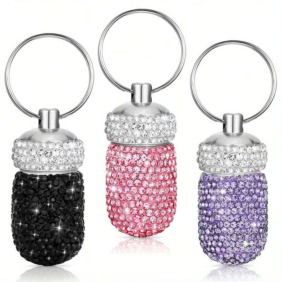 迷你闪亮药盒药瓶盒便携式旅行药盒药品分发器口袋药盒储物瓶带钥匙扣旅行装
