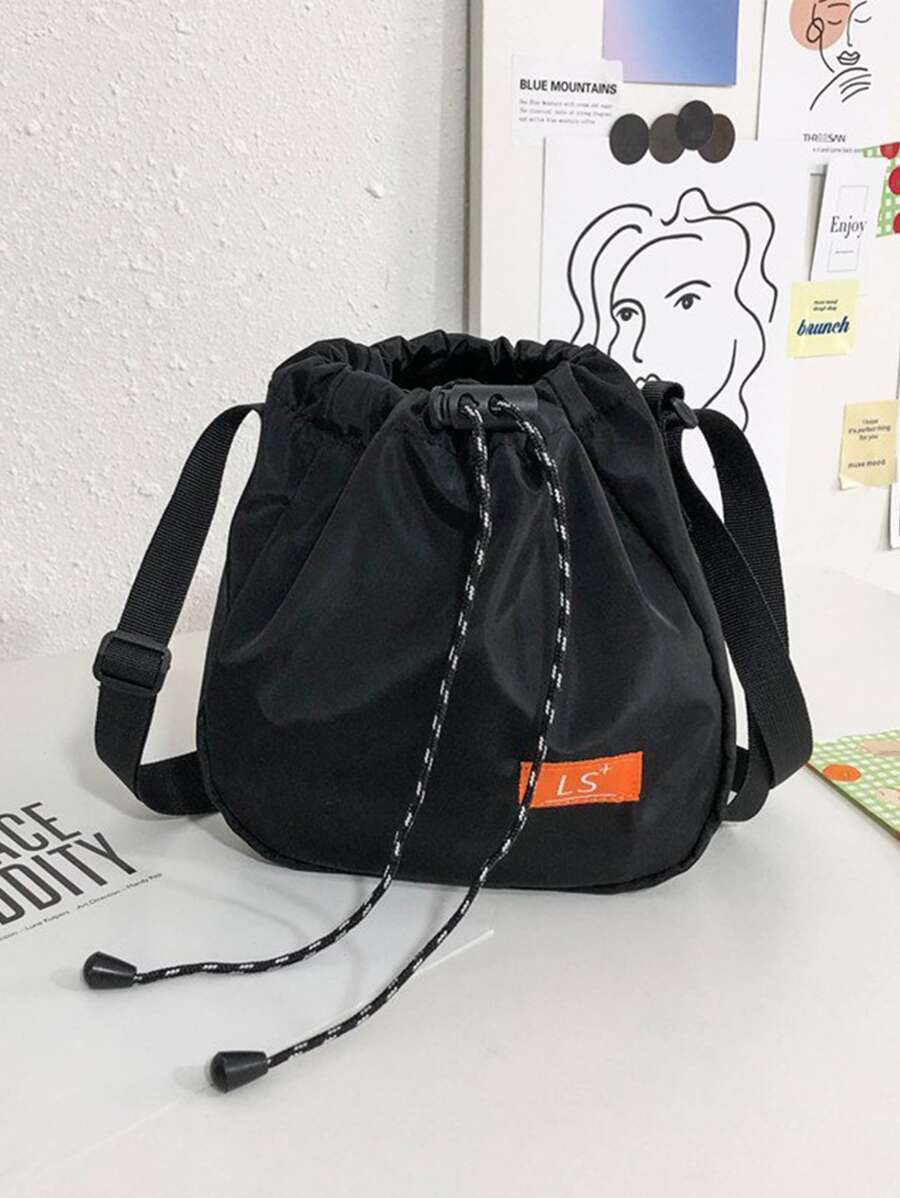 迷你字母貼片抽繩設計斜挎包,男女防水抽繩健身背包包,運動健身袋迷你旅行背包,繩包背包束緊防水尼龍適合健身房購物運動瑜伽黑色一號書包適合研究生,青少年女孩,大學、大學和高中新生、大二、初三和高中生,非常適合戶外、旅行和返校