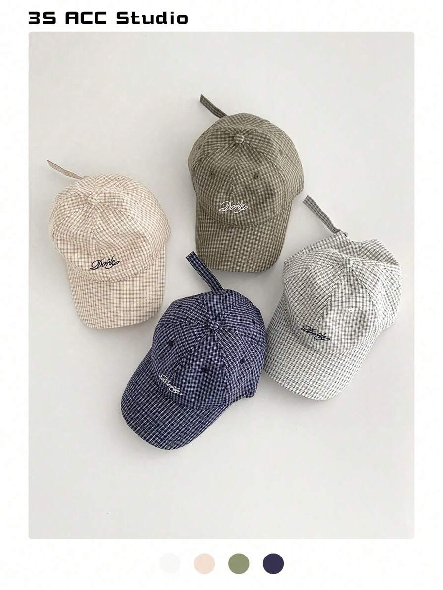 极简刺绣字母软顶复古格纹帽檐帽,薄款长帽檐防晒五片帽,街头风平沿男女通用格子棒球帽,美式英伦学院风,大头围防晒运动帽