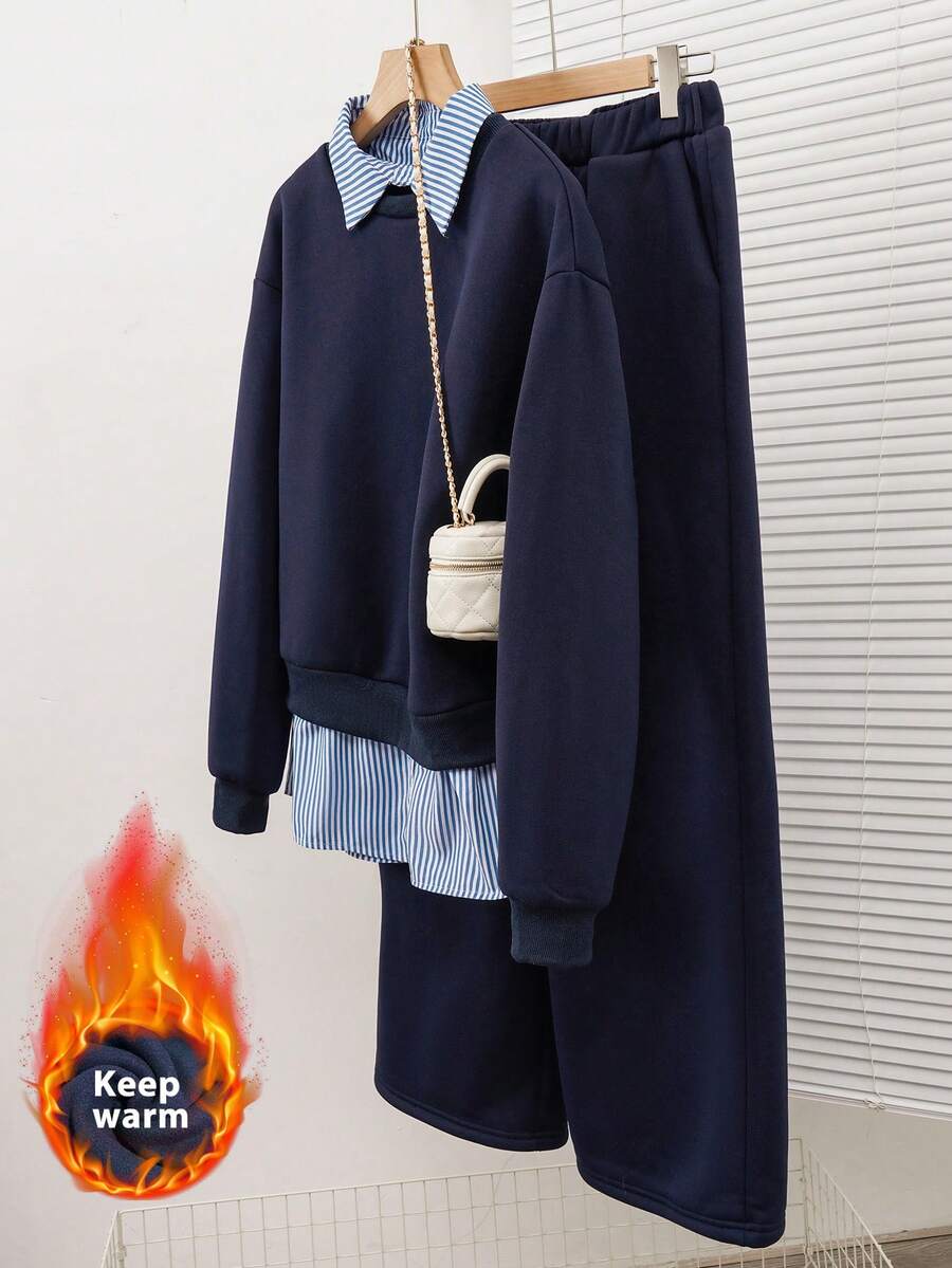 • Modelyn 女士条纹拼接卫衣和裤子两件套,优雅时尚 - 彩色 - 查看 3