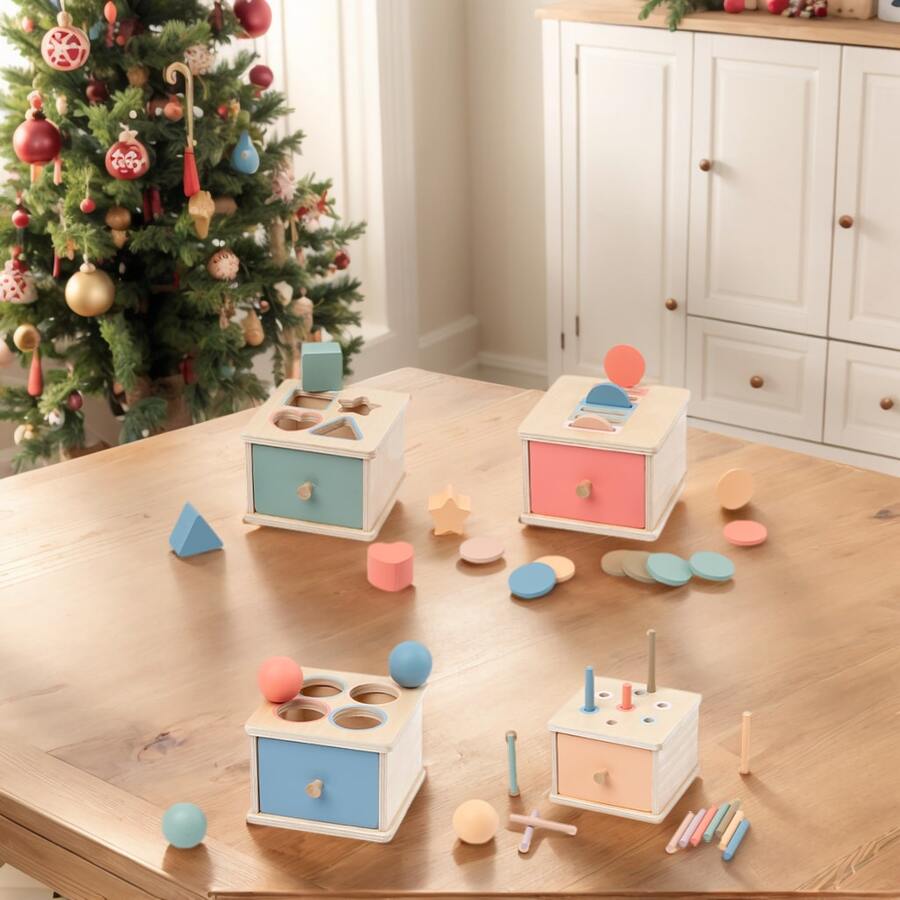 儿童蒙特梭利几何形状分类盒教具颜色形状分类盒硬币盒插棍球投掷形状配对学龄前教育玩具