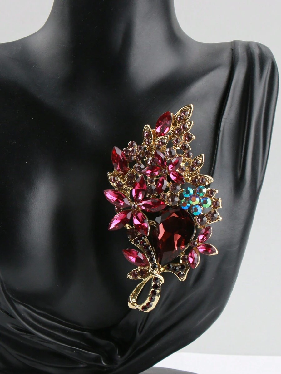 1入華麗的完美水晶巴洛克领带胸針女性时尚钻石经典大徽章復古女士派對宴會胸針