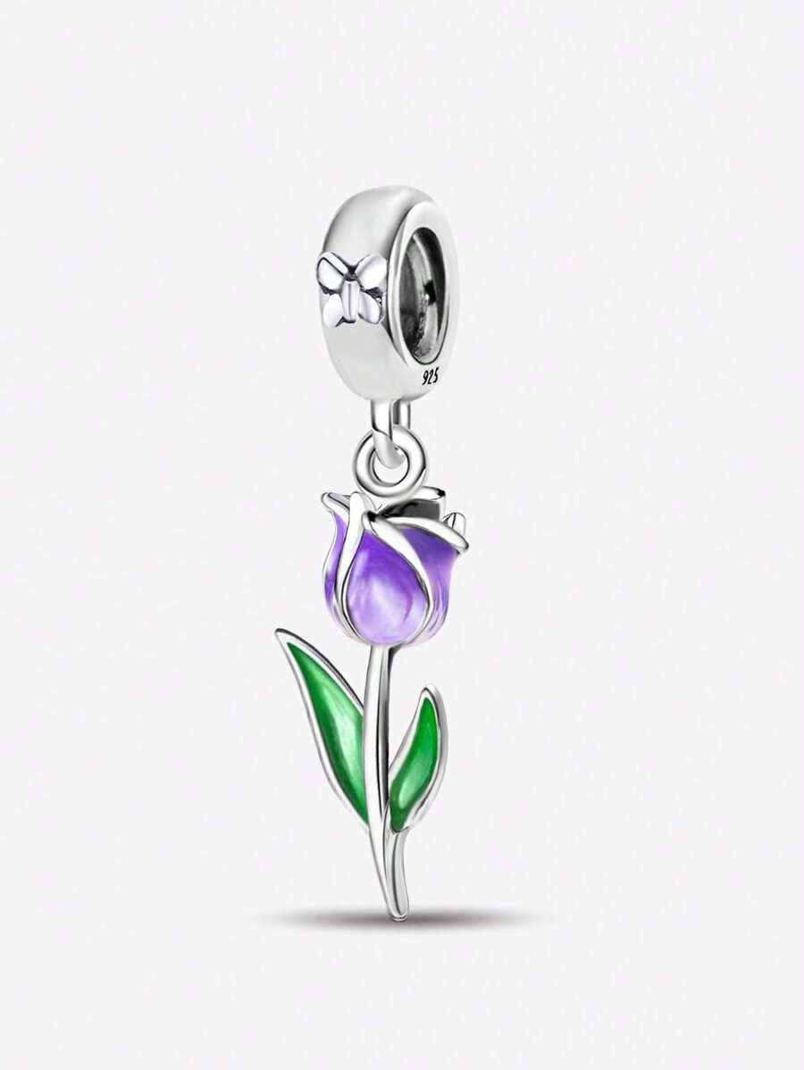 1颗时尚郁金香和三叶草花朵吊坠珠,适合女士手链、手镯DIY饰品制作和日常穿搭,是女孩的理想配饰。