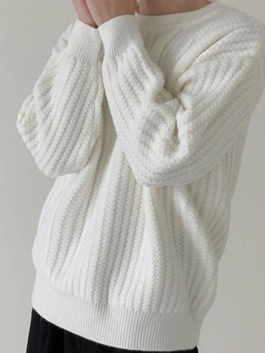 新款秋冬男士美式英伦风格小众设计粗针织毛衣,休闲宽松圆领套头衫