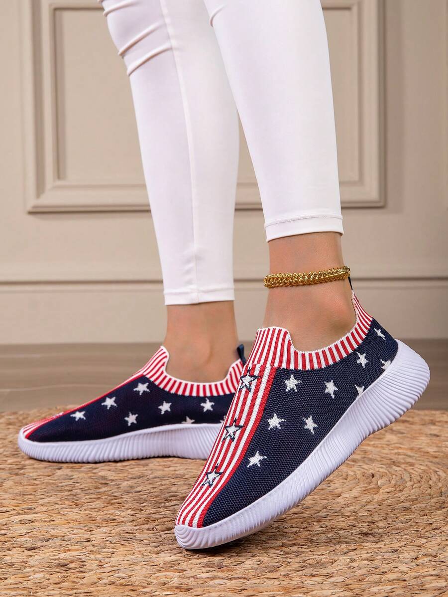 全新独立日透气软底休闲时尚运动鞋,情侣日常百搭一脚蹬网眼鞋,轻便休闲时尚户外鞋
