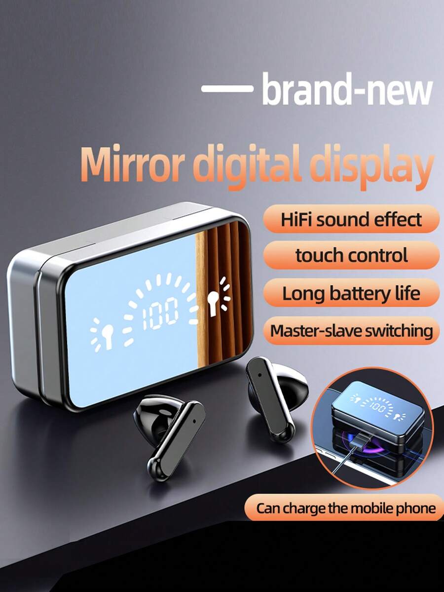 全新无线蓝牙耳机,带镜面LED数字显示屏,重低音,内置麦克风,音质清晰,无线游戏耳机,待机时间长,支持音乐和多模式游戏