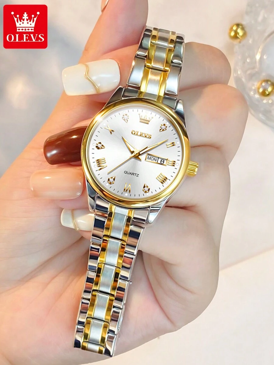 OLEVS. OLEVS 女士手表,女士原创钻石手表,防水夜光不锈钢奢华石英女士手表,金表