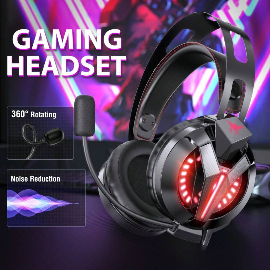 Onikuma遊戲耳機,具有靈活的降噪麥克風,新型巧妙設計的有線3d立體led燈耳機,適用於pc和筆記本電腦的遊戲玩家