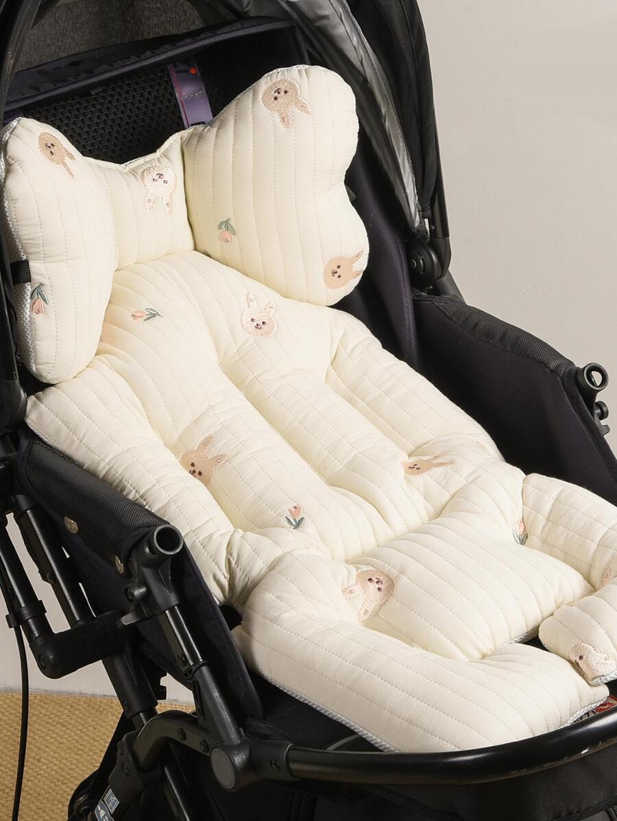 一個加厚的嬰兒嬰兒車座墊,帶有刺繡圖案和拼布縫紉