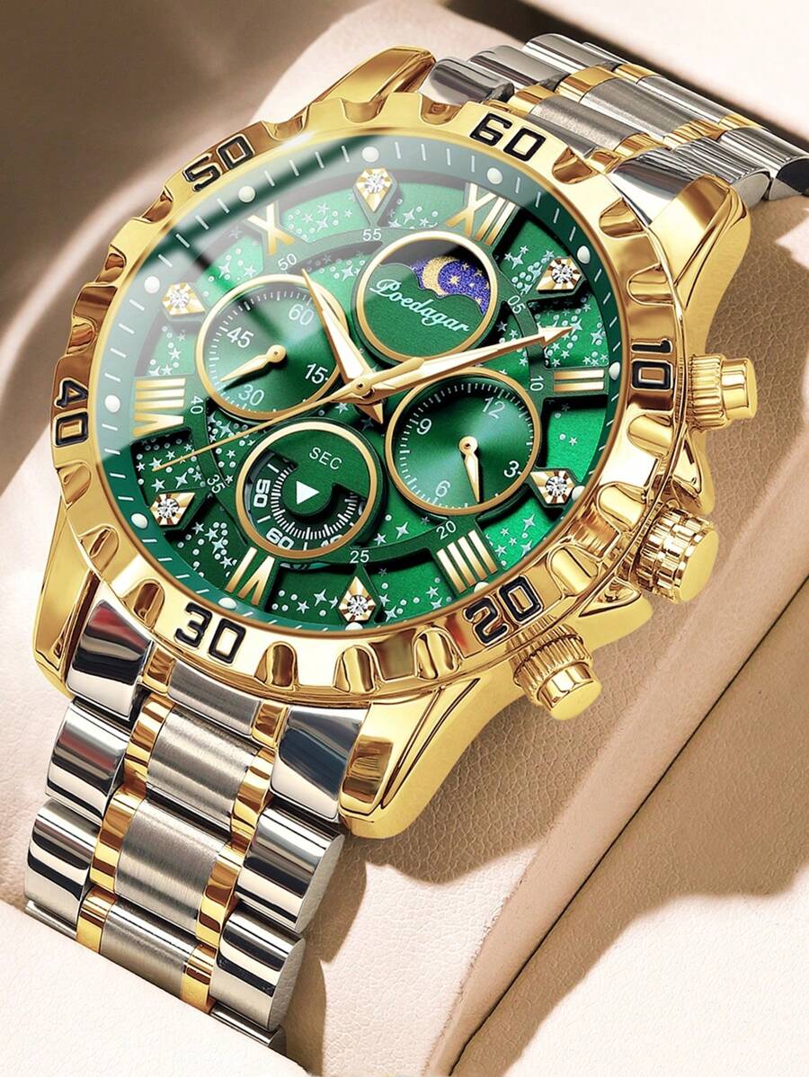 POEDAGAR 1 件男士运动手表,防水计时码表,夜光不锈钢豪华石英表 + 礼盒