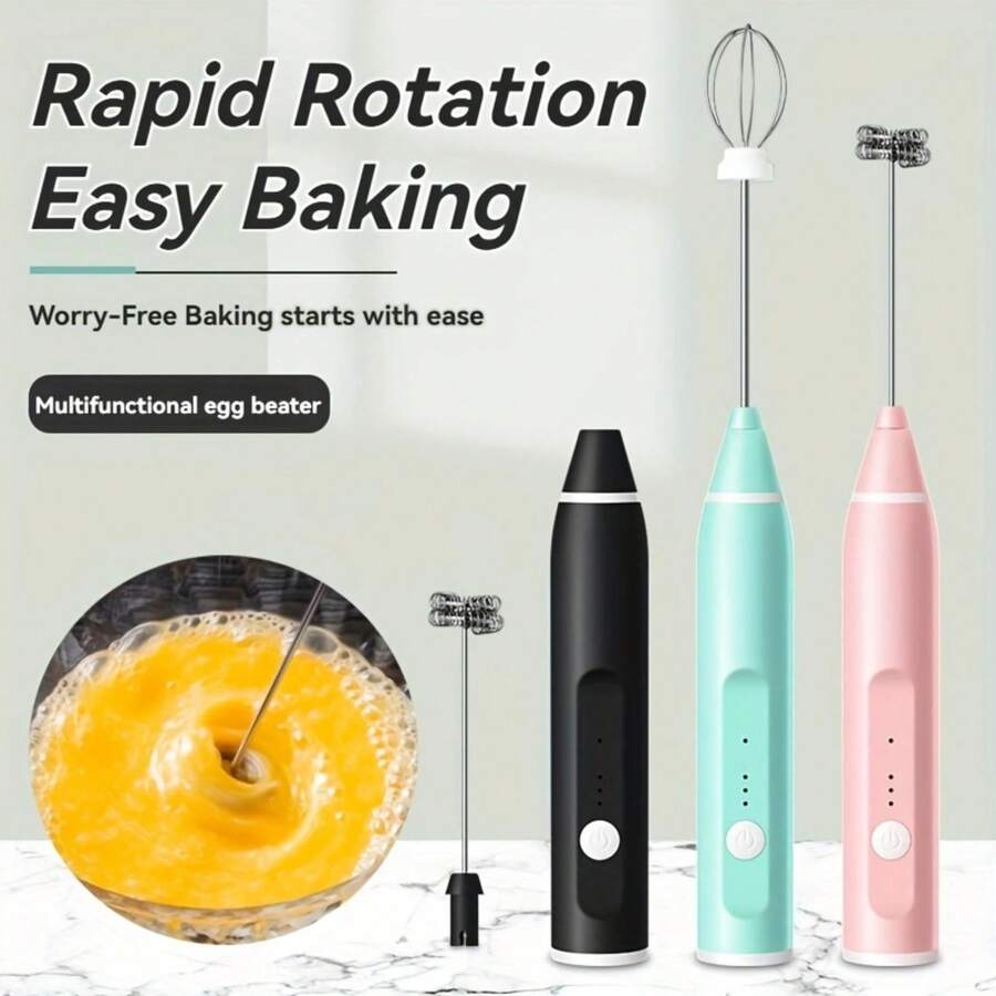 USB 可充电无线二合一手持式电动奶泡器、迷你搅拌机和打蛋器,带 3 档速度、不锈钢可拆卸搅拌器/支架 - 便携式搅拌机,适用于咖啡、卡布奇诺、烘焙、蛋白奶昔、威士忌、抹茶和烹饪工具