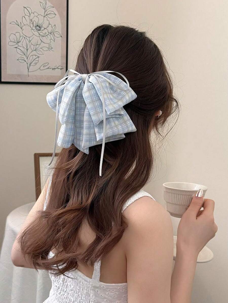 发夹 1 件优雅格纹蝴蝶结发夹,柔软优雅的低马尾造型,高端感,时尚百搭的发夹,适合日常佩戴、休闲、派对、通勤、旅行、搭配服装发饰优雅爪夹、蝴蝶结配饰、学校用品、学院秋季配饰秋冬度假装女士