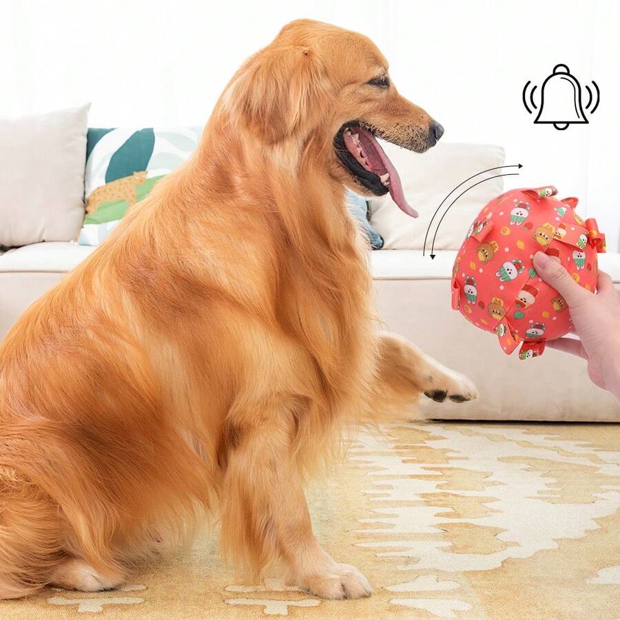 带铃铛的宠物狗玩偶、自娱狗球、带拨浪鼓的毛绒小狗玩偶