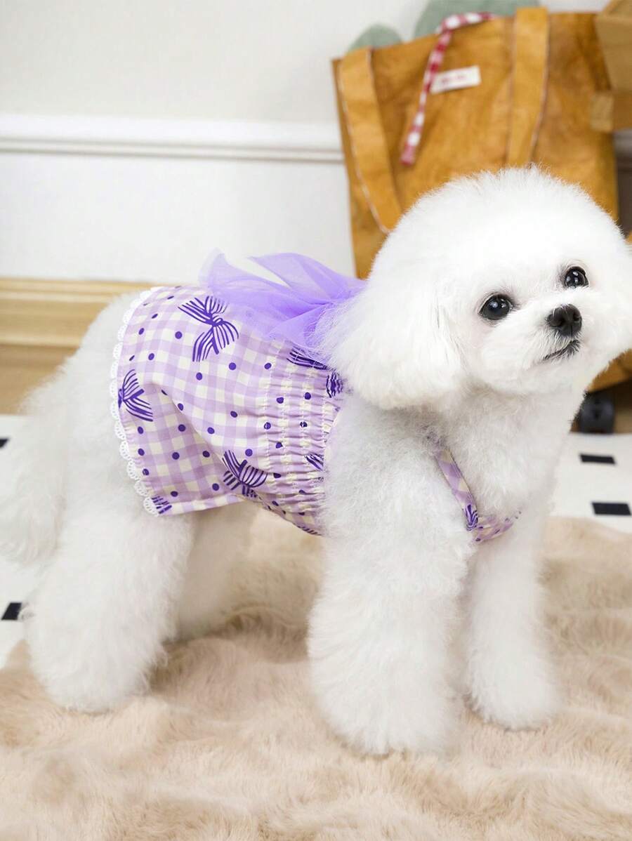 宠物春夏背心裙,蝴蝶结设计,宠物派对婚纱,狗狗透气连衣裙,狗狗连衣裙,紫色狗狗连衣裙,狗狗花童连衣裙