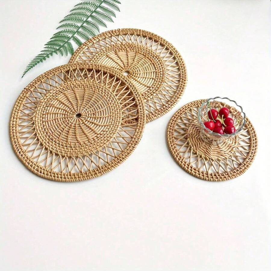 1 件手工编织藤条杯垫 - 耐热防滑饮料垫 | 适用于厨房和餐厅装饰 | 高品质桌面保护垫 | 适用于茶和其他用途