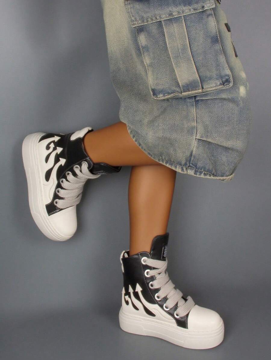 厚底时尚女式踝靴圆头厚底女士运动鞋硫化鞋系带设计师哥特朋克摇滚短靴黑色短裤