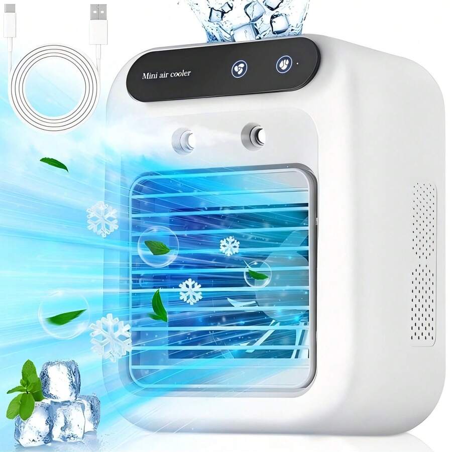 便携式空调,可充电空气冷却器,带 500 毫升水箱的台式冷却风扇,适用于房间、旅行、办公室,带水箱的加湿风扇,冷水机