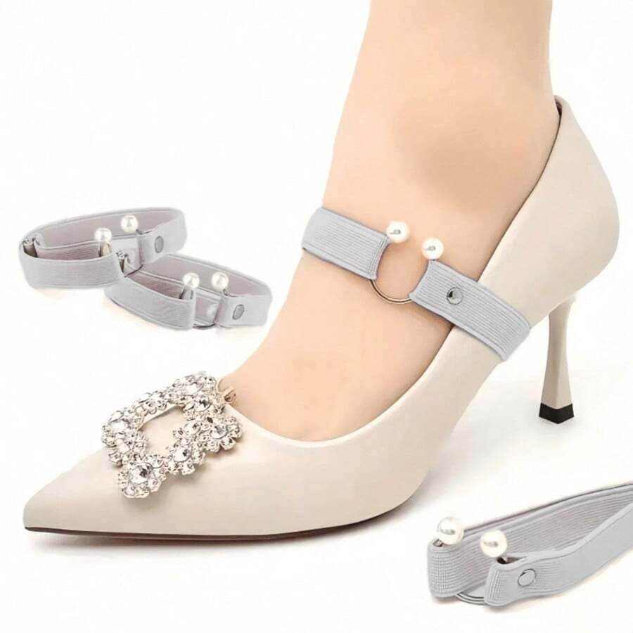 QKC 1双可调节弹力鞋带,适合夏季高跟鞋,踝部固定防滑鞋带,配有U型仿珍珠扣
