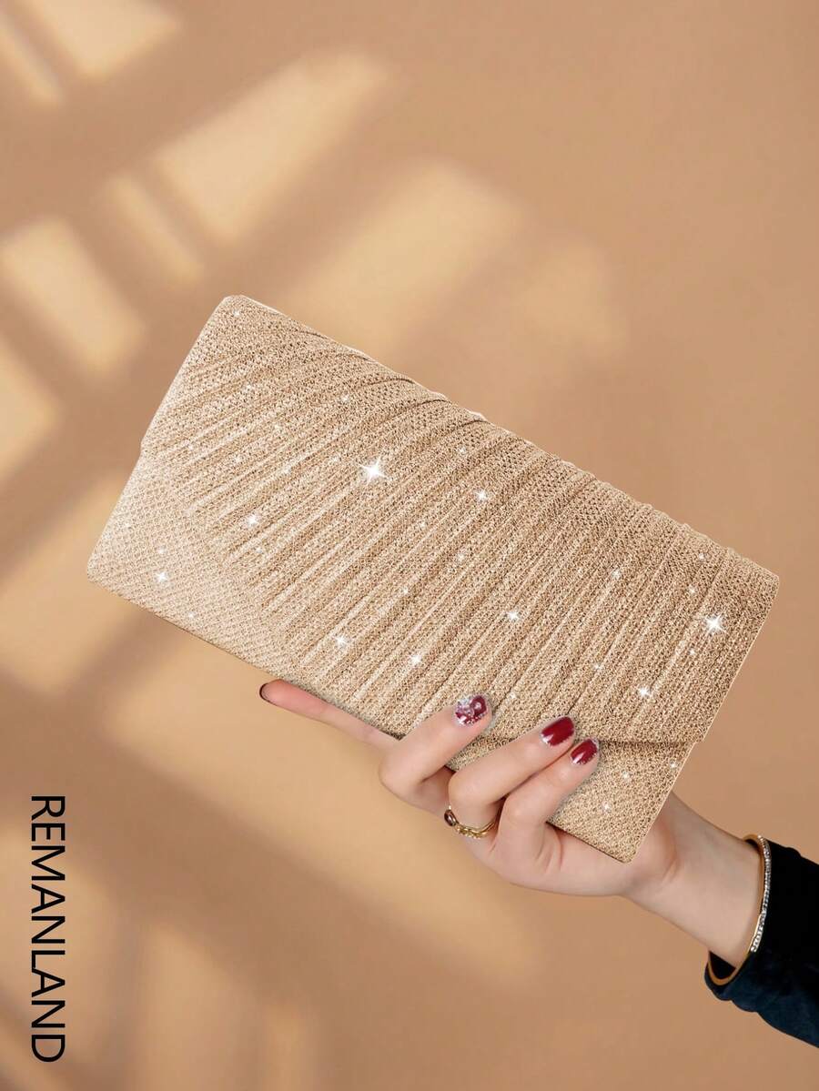 REMANLAND 1件优雅褶皱亮面女士手提包,时尚魅力女士晚宴钱包,信封式手拿包,带隐藏式卡槽和隔层,配有可拆卸金属链的单肩包,是派对女孩、新娘和节日礼物的理想之选。