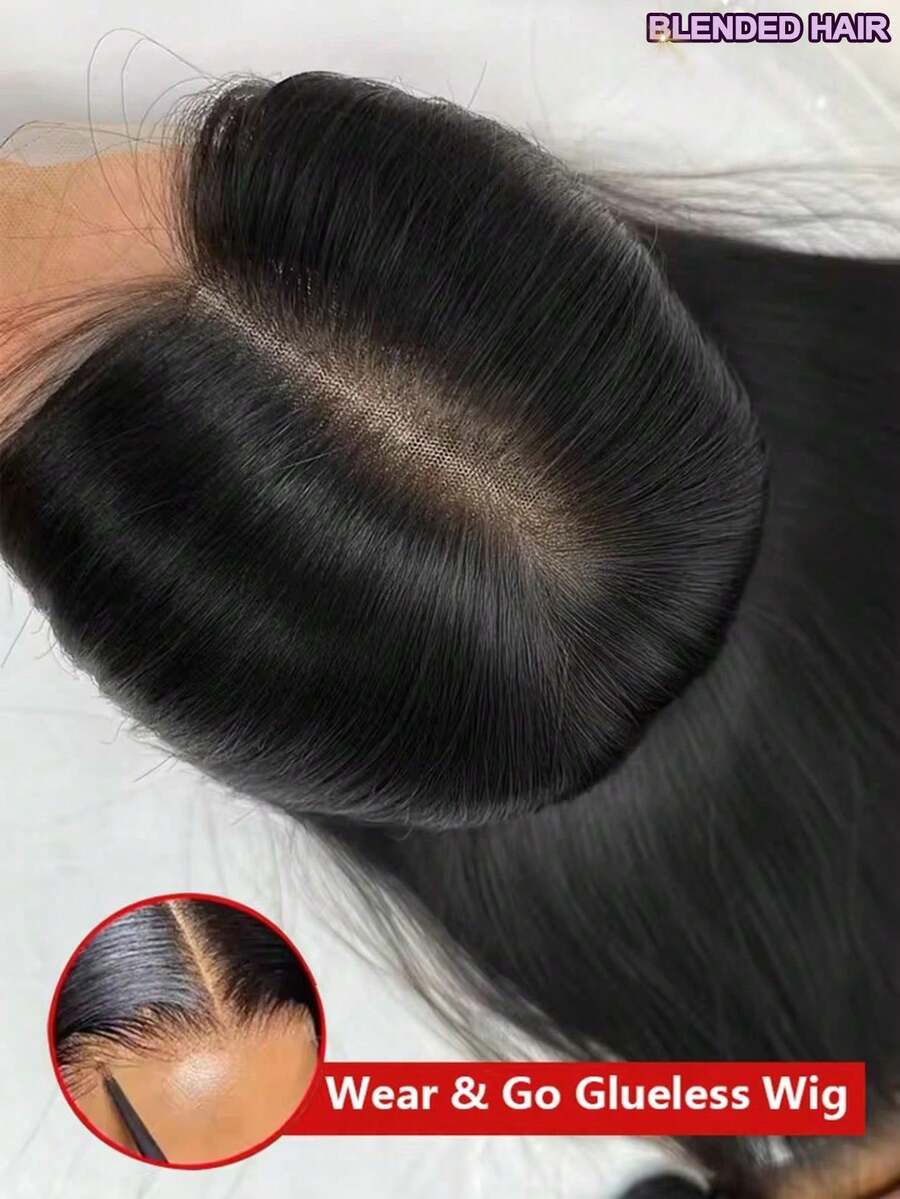 即戴即用,无需胶水,真人发混纺假发,5x5预剪高清蕾丝前假发和13*4蕾丝前假发,200%密度黑色长直发假发 - 预漂白发结,自然发际线 - 无需胶水,即刻佩戴