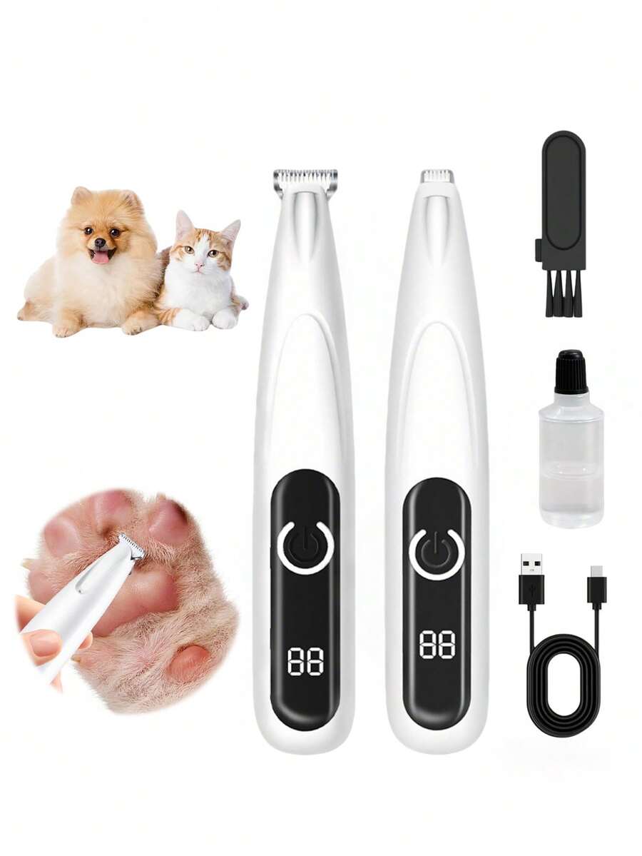 • 可充电低噪音宠物修剪器,带LED灯,无线防水宠物美容套装,适用于爪子、耳朵、脸部和臀部 - 白色 - 查看 2