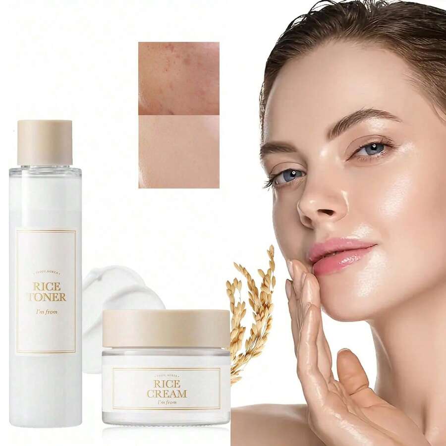 大米爽肤水+大米霜护肤套装,打造水润光泽的玻璃肌,含烟酰胺的光泽精华,含神经酰胺的米糠精华,焕发光彩,改善皮肤保湿屏障,深层滋养,平滑均匀肤色