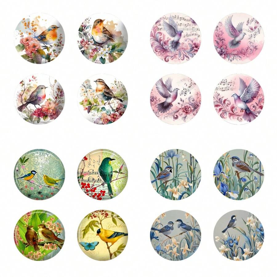 4 件/套鸟类系列 - 彩色鸟类图案主题 - 彩色印刷木制耐热杯垫,适合感恩节、圣诞节、万圣节装饰、礼物和节日派对