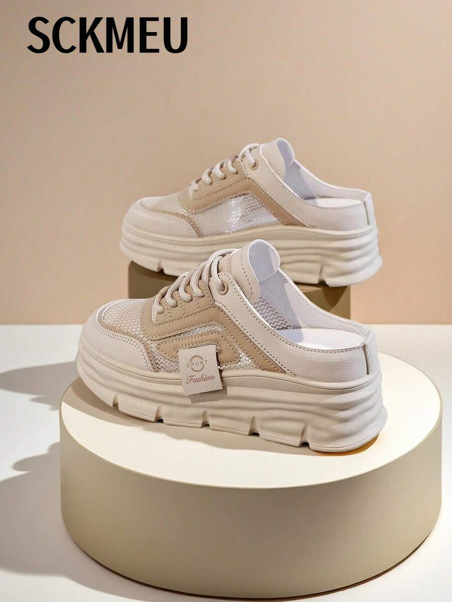 SCKMEU 1 双女式网眼拼布一脚蹬穆勒鞋,厚底,厚底,时尚百搭休闲鞋