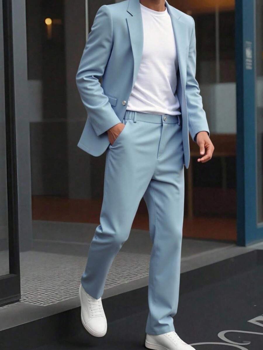 SHEIN 2 件青少年男童休闲西装套装,绅士风格街头潮流朋克摇滚校园装,适合春夏季节