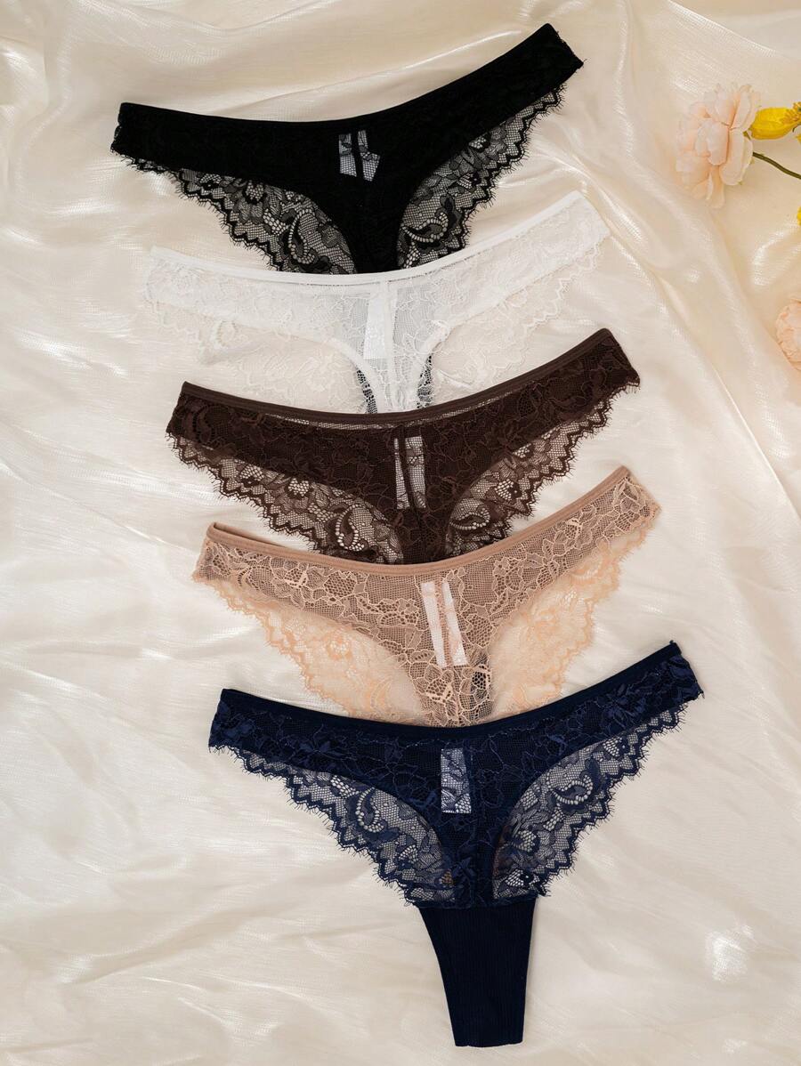 SHEIN 5 件套蕾丝拼布罗纹布丁字裤