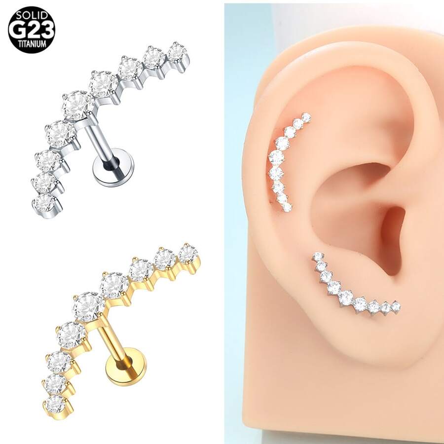 • SWANJO 1件植入级钛金属内螺纹唇钉,弧形底座,镶嵌9颗立方氧化锆石,时尚耳钉,穿刺饰品 - TC070 - 查看 9