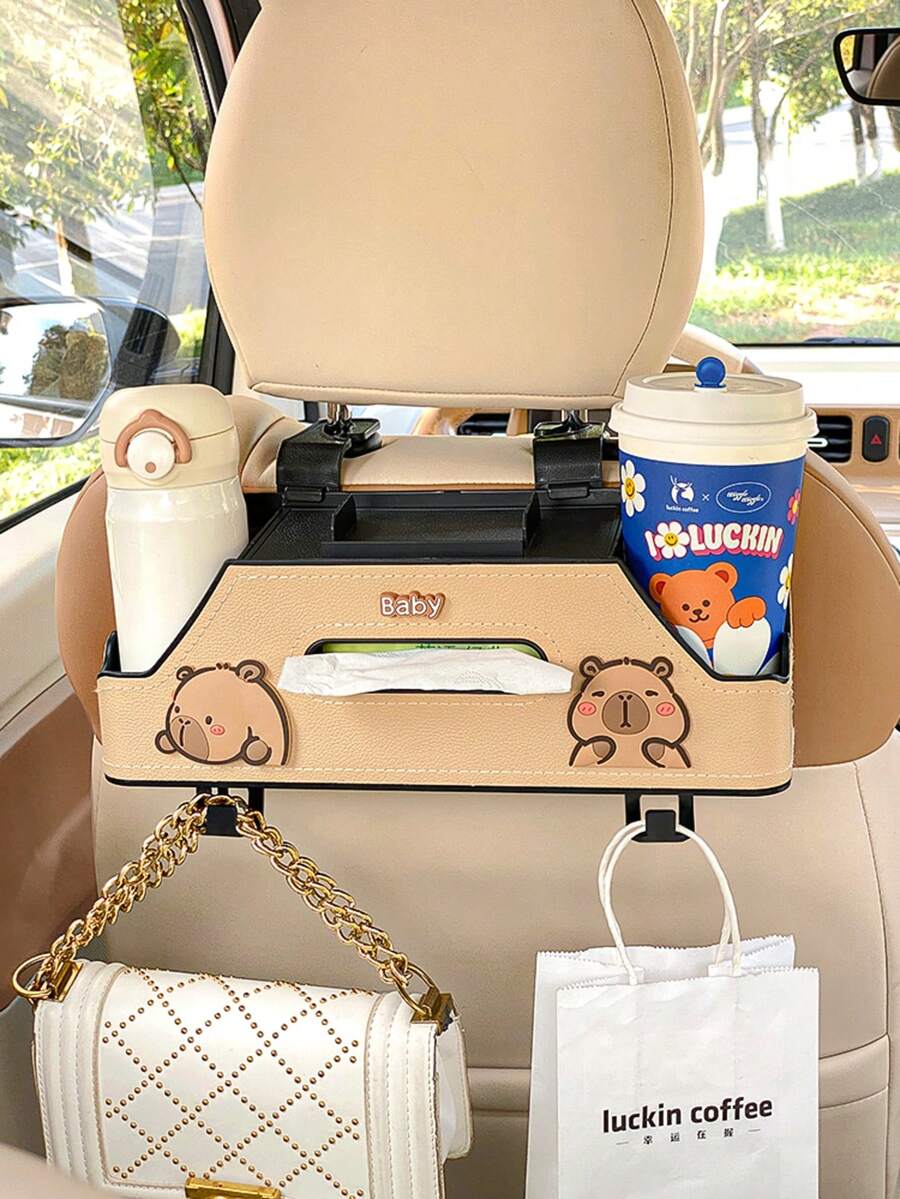 这款单包装卡通水豚造型多功能后座储物盒,专为熊猫主题汽车设计。它配备便捷的水瓶杯架和纸巾盒,兼容所有车型。不仅是汽车装饰、车内收纳和纸巾整理的理想之选,还集成了多种汽车挂钩功能。