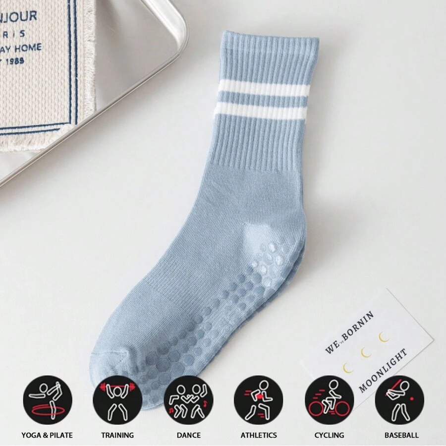 运动户外普拉提袜子专业防滑瑜伽袜,中筒运动袜,纯色地板袜