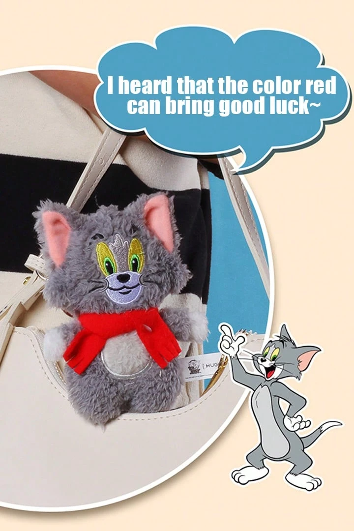 汤姆和杰瑞系列毛绒围巾钥匙扣 - 杰瑞老鼠和汤姆猫设计,带声音 BB 功能,可爱的毛绒饰物,适用于包背包