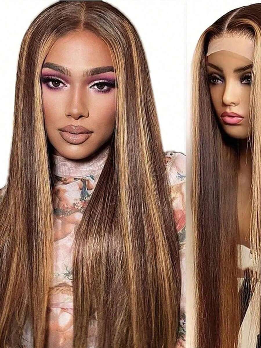 Eulisi 直发 13X4 蜜金色高清透明蕾丝前假发人发 4/27 高光渐变色蕾丝前假发人发预拔婴儿头发 180 密度无胶人发假发女士
