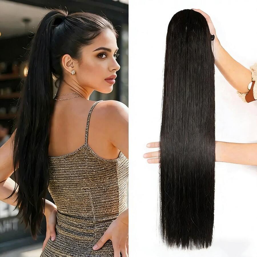 直发马尾接发,带夹子和抽绳,巴西直发,100% 未经加工的真人发,自然夹式马尾