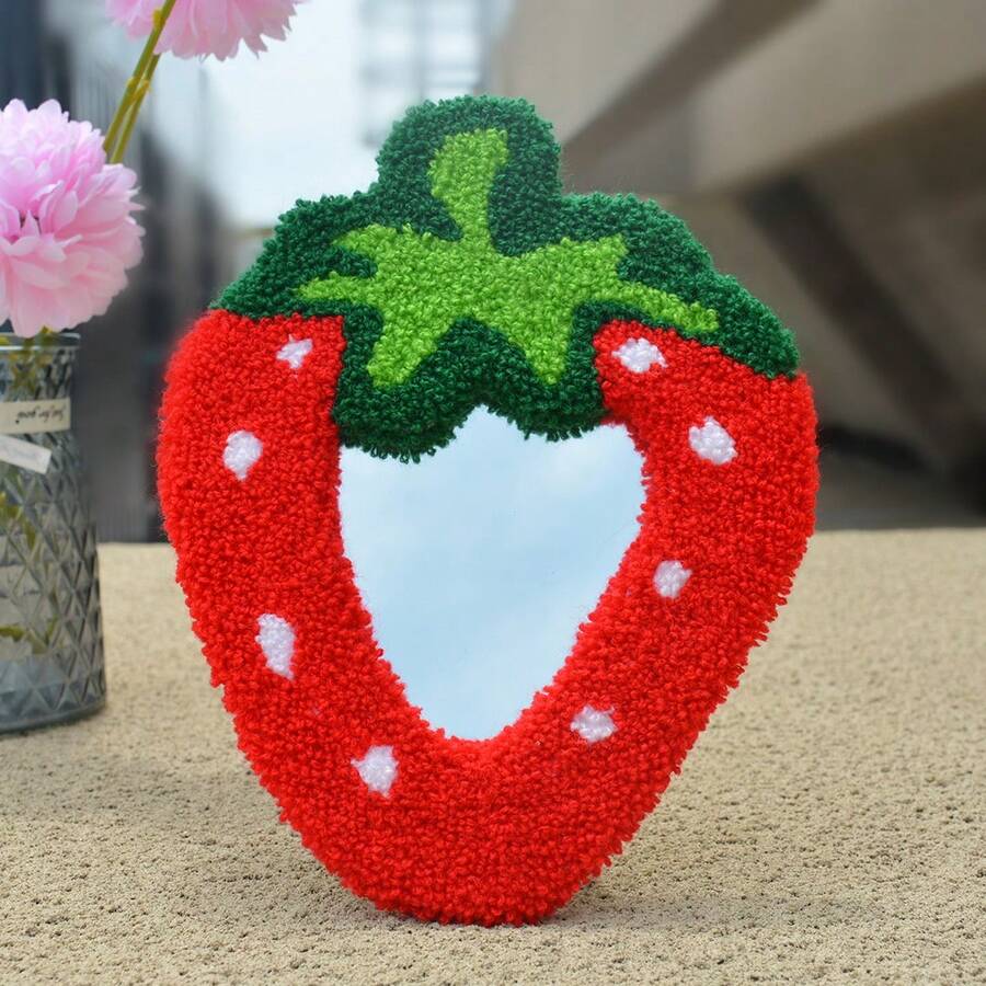 草莓图案化妆镜,绣花毛巾工艺镜,戳刺绣梳妆镜,便携式公主化妆镜,草莓毛巾刺绣相框镜,适合作为节日礼物