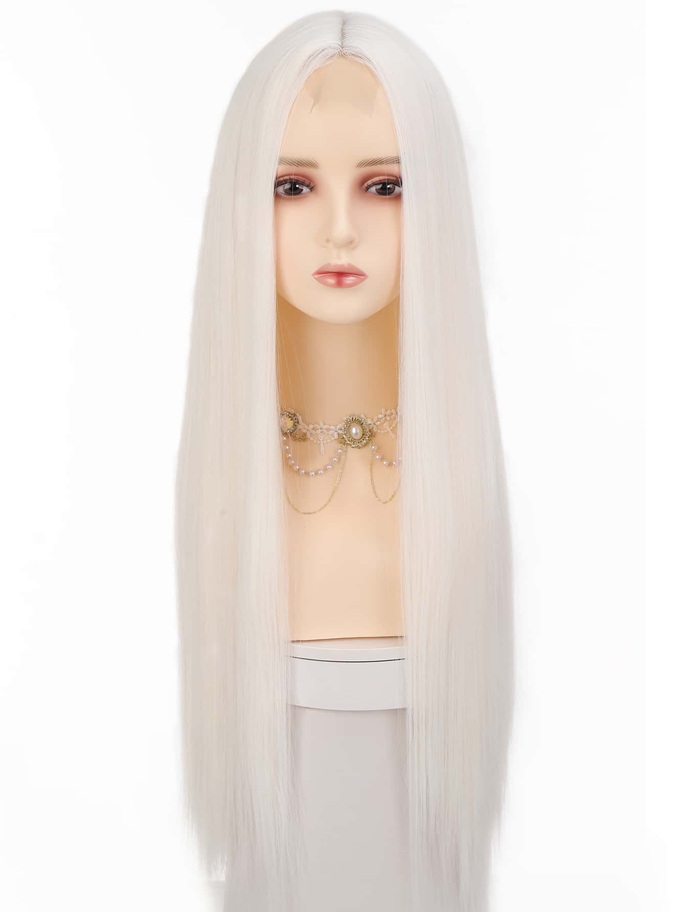 女性用合成花邊前短髮28英寸直髮花邊假髮黑色花邊假髮角色扮演直髮花邊前短髮