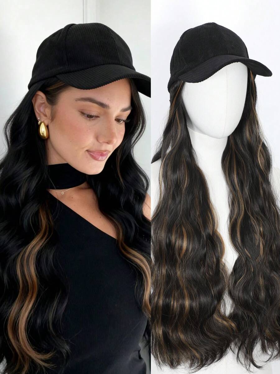合成长波浪发帽,带接发,一体式假发帽,适合女性和女孩日常发型。