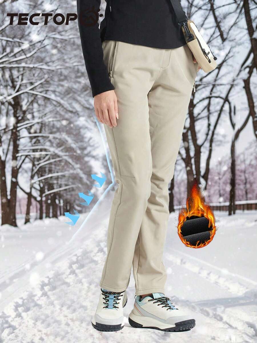 TECTOP 女士保暖防风防水软壳户外运动徒步滑雪裤,适合秋冬季节穿着,抓绒材质。
