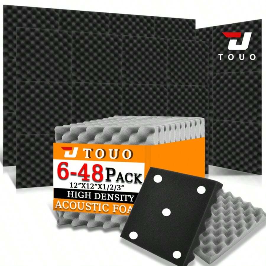 TOUO 6-48 块吸音泡沫 12 英寸 X 12 英寸 X 3 英寸 / 12 英寸 X 12 英寸 X 2 英寸 / 12 英寸 X 12 英寸 X 1 英寸 吸音板 8 色高密度吸音泡沫墙板 音乐工作室声学处理