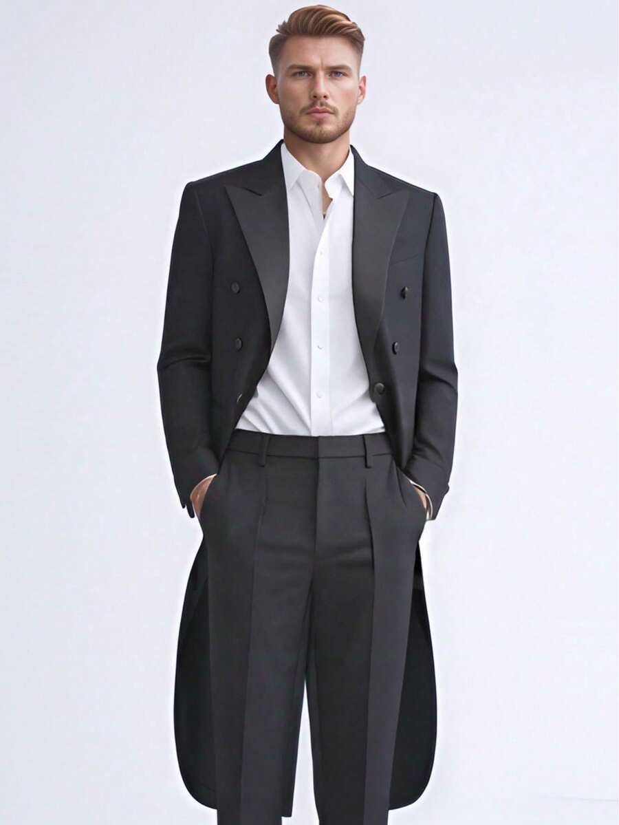 男士燕尾服外套 - 长款黑色晚礼服燕尾服,尖领,奢华婚礼晚宴演出服装,合唱团指挥黑色外套(仅限外套)